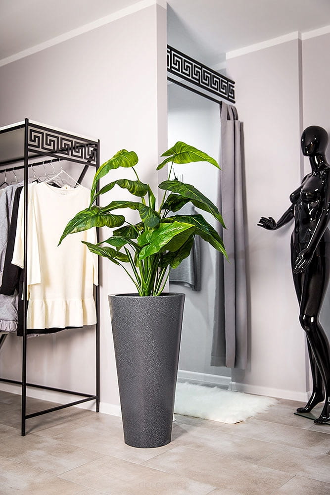 Prosta i jednocześnie elegancka forma imitujących ciemny marmurek donic Della o wysokości 75 cm znakomicie dopełni nie tylko niejedno wnętrze, ale również otwartą przestrzeń. Smukły kształt sprawi, że z łatwością wpasują się w każdy wystrój - od tradycyjnych, ciepłych pomieszczeń, po mieszkania w minimalistycznym, industrialnym stylu, a jako osłony dla większych roślin ozdobią ogrody i tarasy.