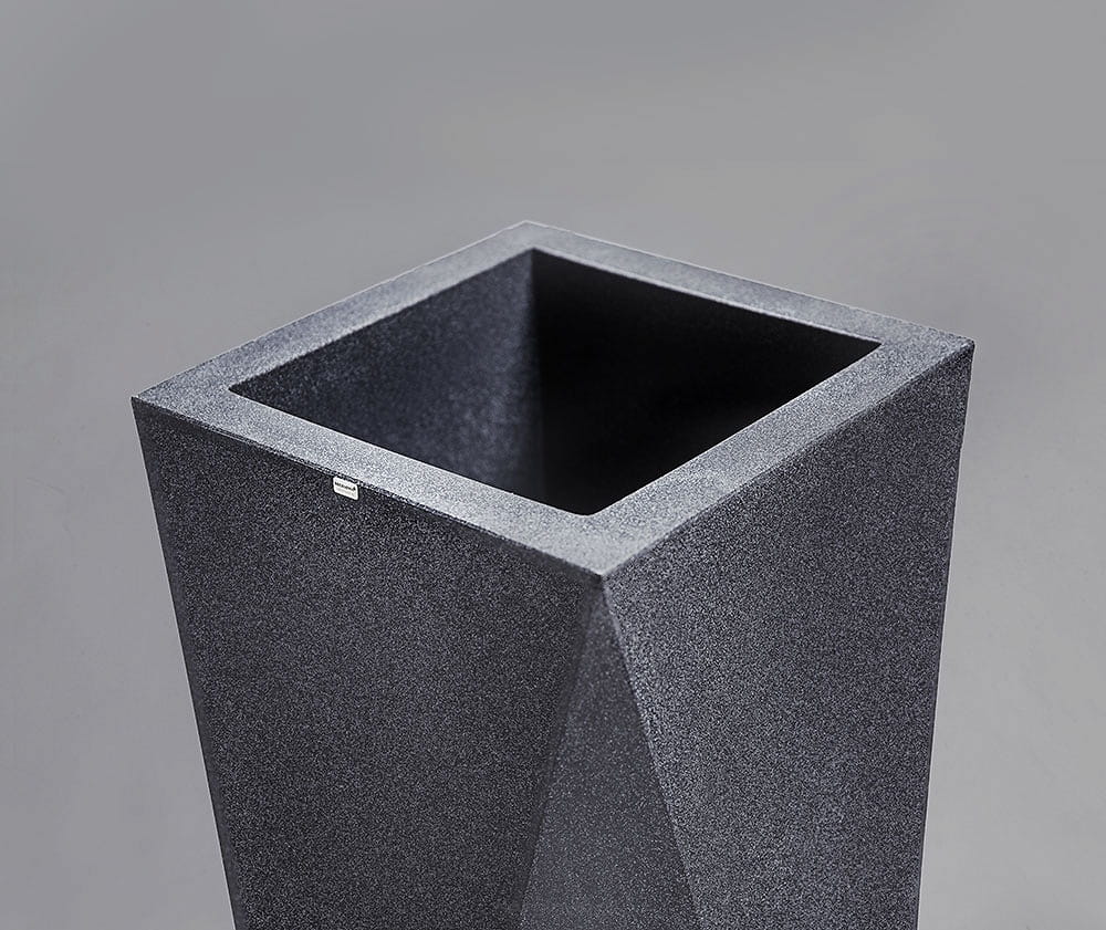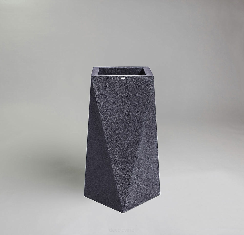 Duża donica o oryginalnym, geometrycznym kształcie. Jej ostre krawędzie sprawią, że charakter wystroju nabierze gustownej i nowoczesnej formy. Marka Decolovin proponuje imitujące ciemny marmurek donice Nevis o wysokości 75 cm wykonane z najwyższej jakości materiałów, gwarantujących ich trwałość i wytrzymałość. Produkt ten znajdzie zastosowanie nie tylko jako tradycyjna donica, ale także unikatowy, awangardowy element dekoracyjny zarówno wnętrz, jak i przestrzeni zielonych.