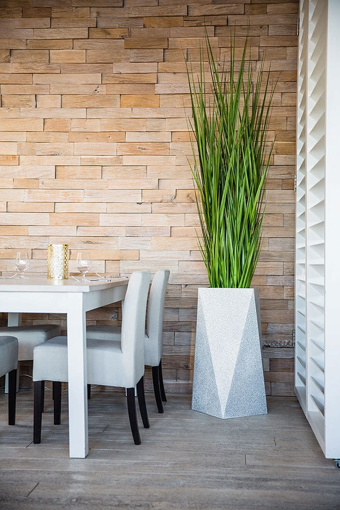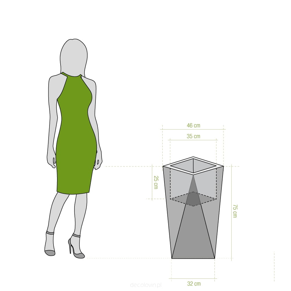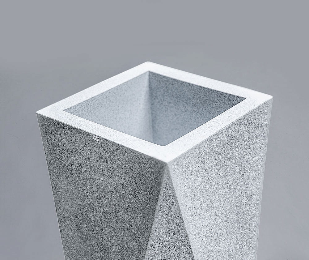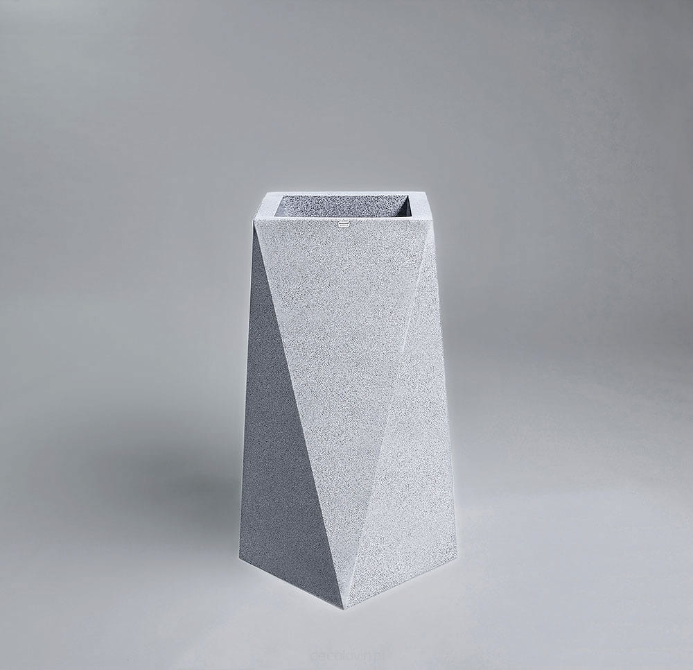 Duża donica o oryginalnym, geometrycznym kształcie. Jej ostre krawędzie sprawią, że charakter wystroju nabierze gustownej i nowoczesnej formy. Marka Decolovin proponuje imitujące jasny marmurek donice Nevis o wysokości 75 cm wykonane z najwyższej jakości materiałów, gwarantujących ich trwałość i wytrzymałość. Produkt ten znajdzie zastosowanie nie tylko jako tradycyjna donica, ale także unikatowy, awangardowy element dekoracyjny zarówno wnętrz, jak i przestrzeni zielonych.