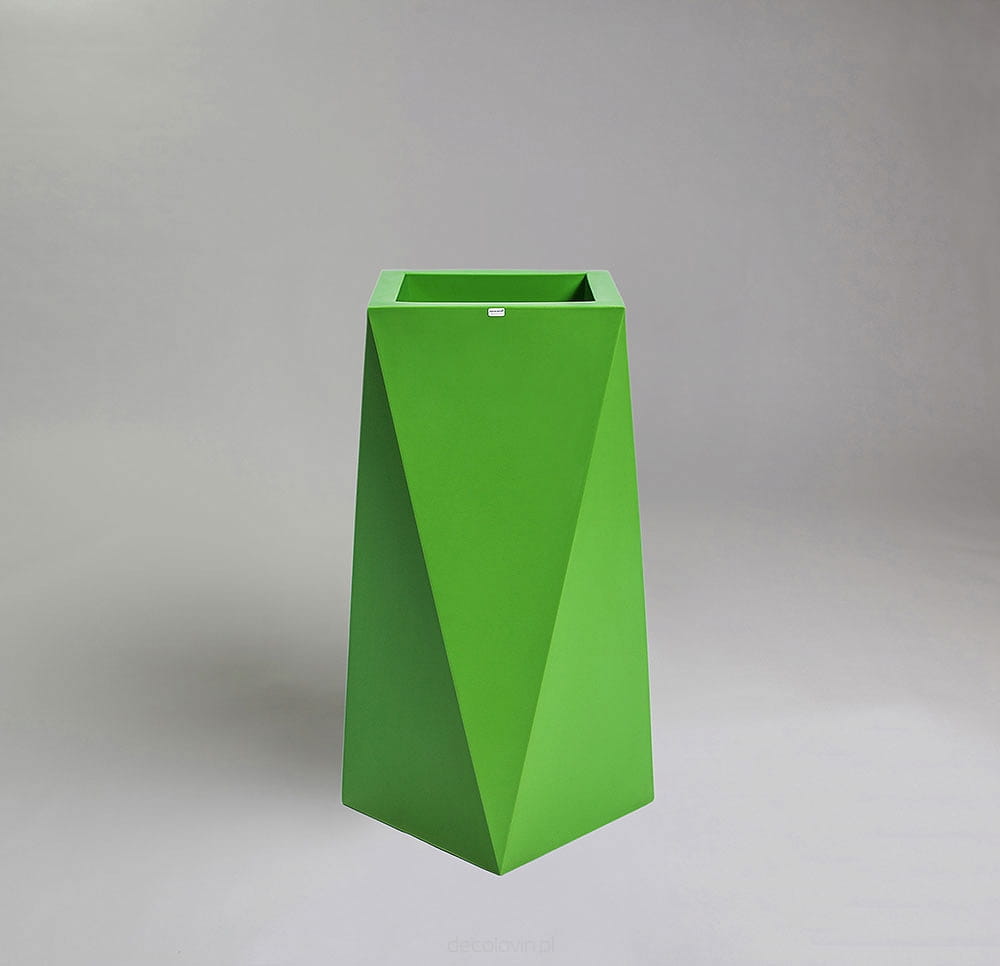 Duża donica o oryginalnym, geometrycznym kształcie. Jej ostre krawędzie sprawią, że charakter wystroju nabierze gustownej i nowoczesnej formy. Marka Decolovin proponuje zielone donice Nevis o wysokości 75 cm wykonane z najwyższej jakości materiałów, gwarantujących ich trwałość i wytrzymałość. Produkt ten znajdzie zastosowanie nie tylko jako tradycyjna donica, ale także unikatowy, awangardowy element dekoracyjny zarówno wnętrz, jak i przestrzeni zielonych.