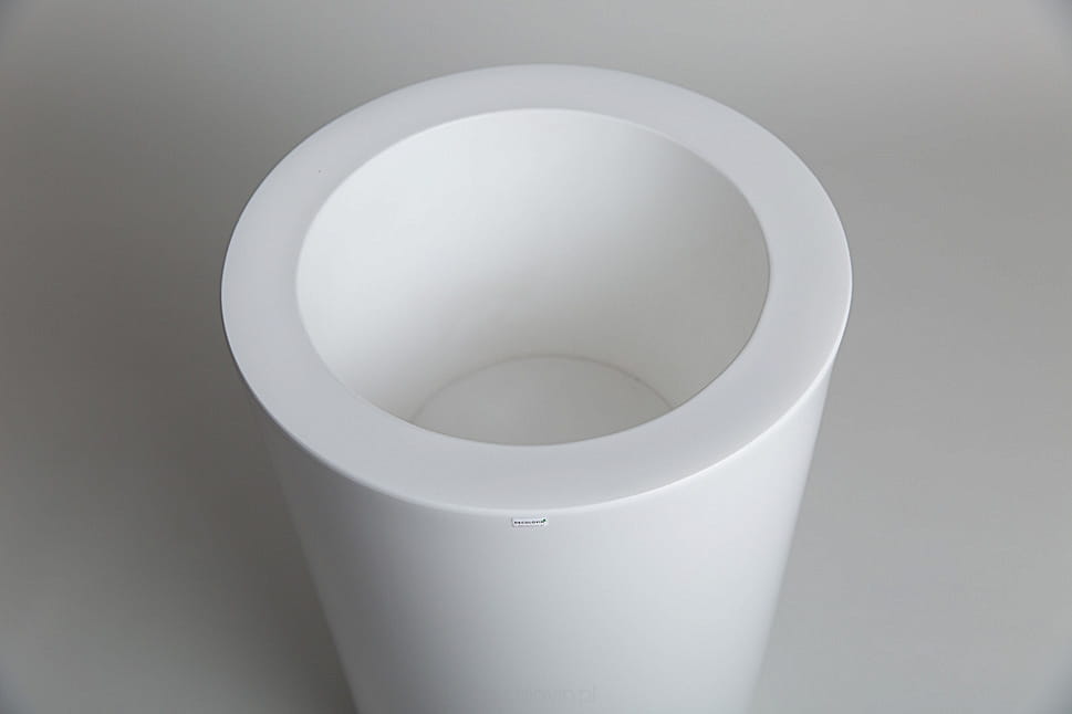 Cylindryczna donica Tilla o wysokości 90 cm w kolorze krystalicznej bieli to idealny dodatek dekoracyjny dla przestrzeni biurowych, a także oryginalna, stylowa ozdoba ogrodów i mieszkań. Szeroka podstawa oraz solidne wykonanie gwarantują stabilność donicy na każdym podłożu. Surowa, minimalistyczna forma sprawia, że z łatwością wkomponujesz donicę w każdą aranżację.