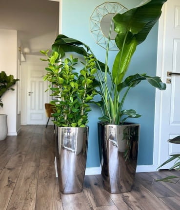 Srebrna Donica Ceramiczna do Salonu 29x57cm Wysoka