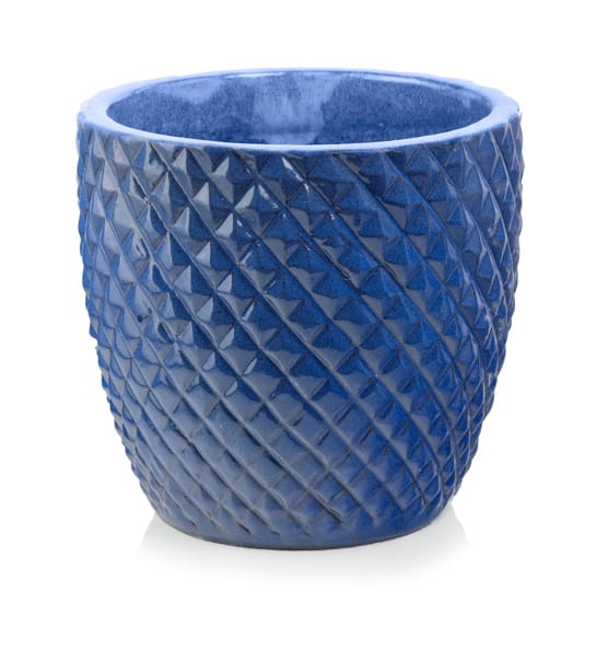 Mrozoodporna szkliwiona ceramiczna doniczka w kolorze niebieskim