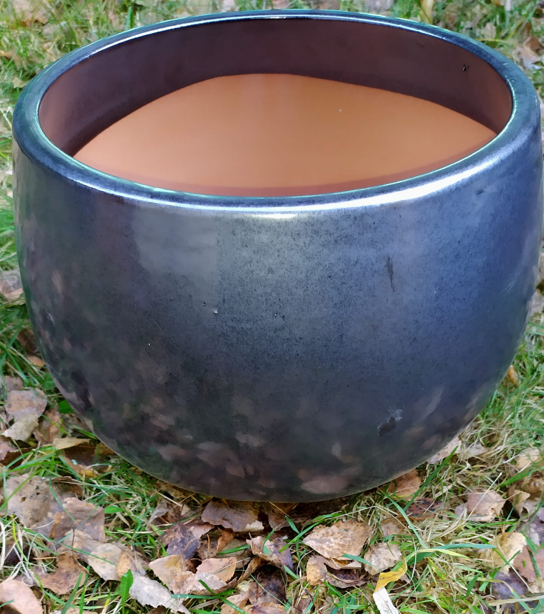 Donica szkliwiona o okrągłej podstawie.
