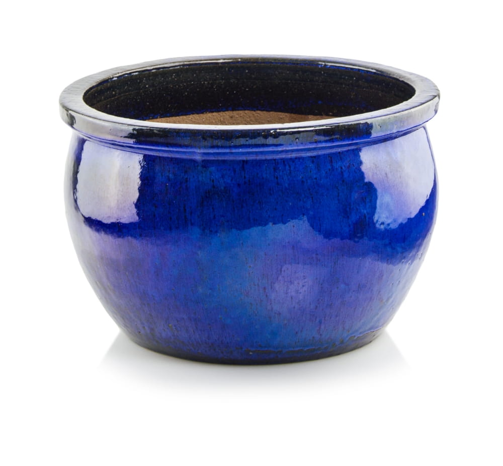Donica szkliwiona o okrągłej podstawie.
