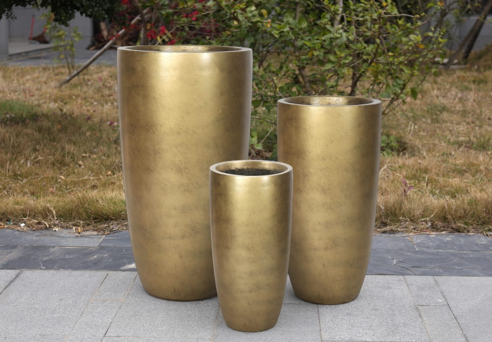 Donica z włókna ceramicznego wysoka złota 100x55 cm