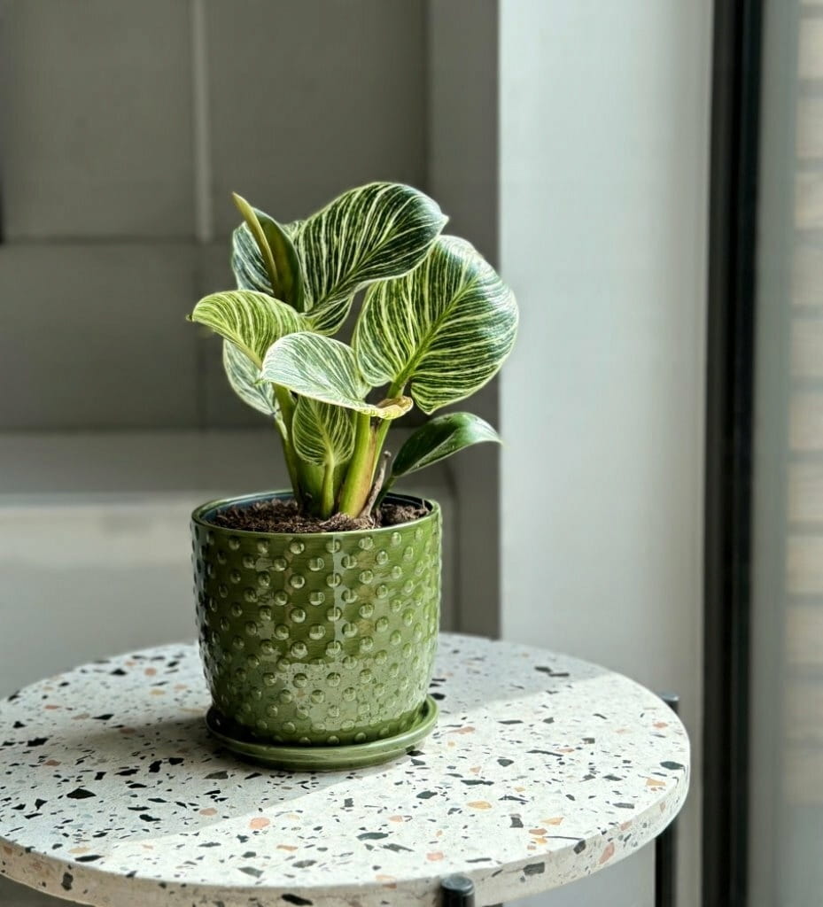 Wpasuje się w kolorystykę zielonych dodatków w domu. Również wzbogaci styl dekoracyjny z dodatkami w kolorach zieleni. Będzie ciekawym akcentem kontrastowym dla zielonej rośliny.