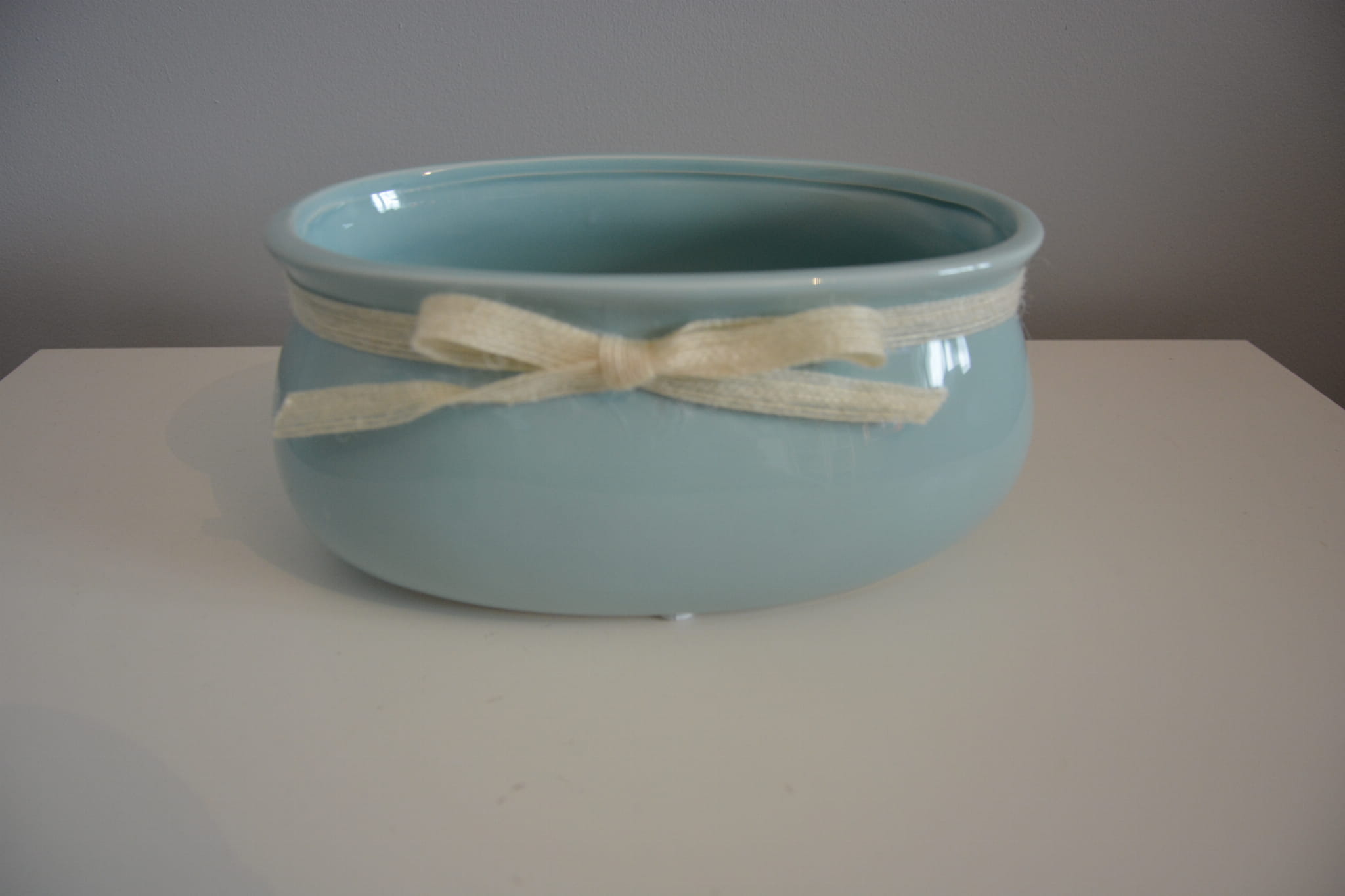 Doniczka miętowa ceramiczna ze wstążką 23x14x10 cm