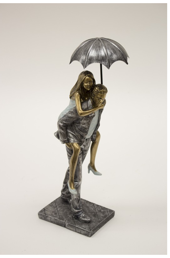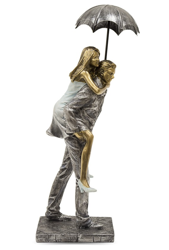 Urocza figurka przedstawiająca zakochaną parę pod parasolem.