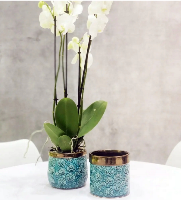 Turkusowo-złota Osłonka Vintage Cylinder 16x16 cm