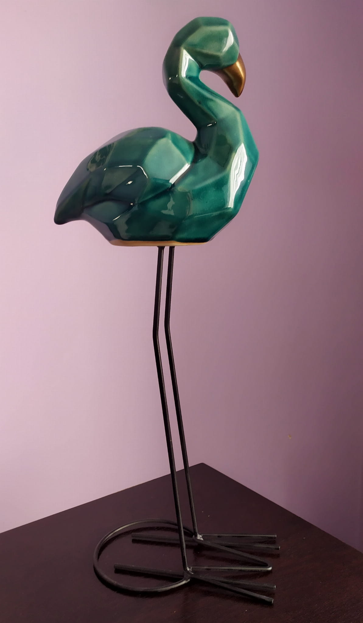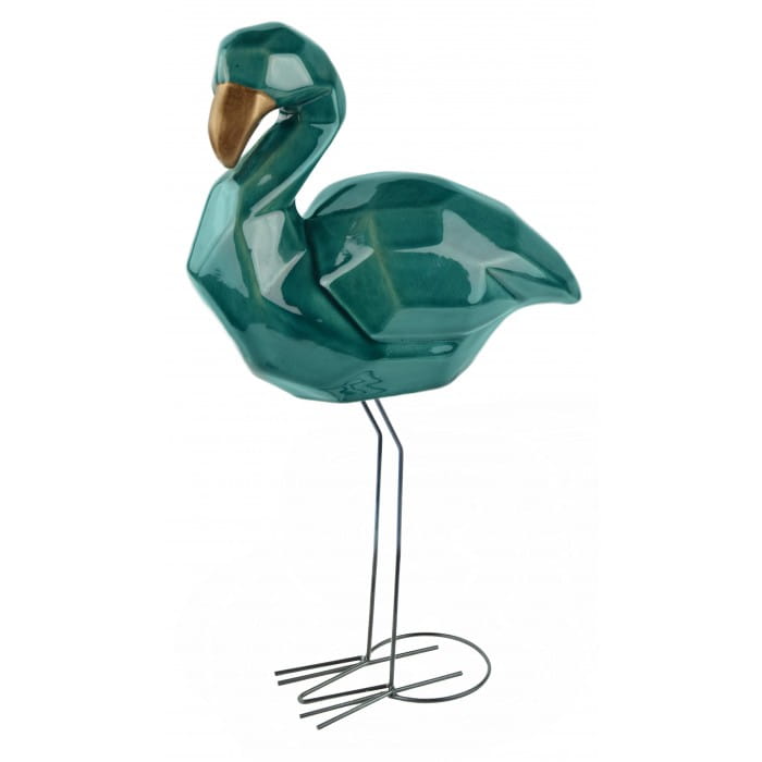 Turkusowa Figurka Flaminga ceramiczny turkusowy 20x 55 cm