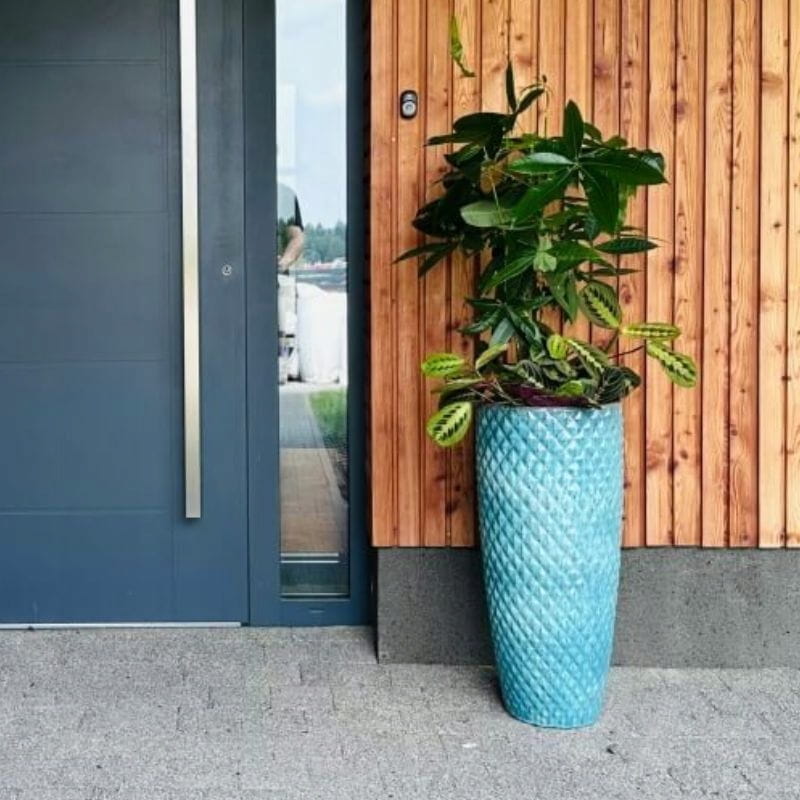 Turkusowa wysoka donica ceramiczna cygaro z dekoracyjną powierzchnią 50 cm