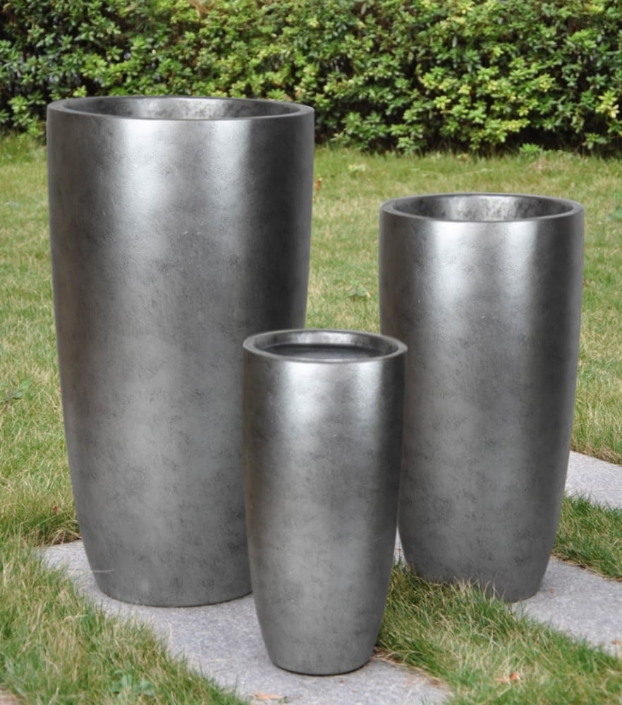 Wysoka Srebrna Donica Ceramiczna Ecolite - Cygaro 62x32 cm