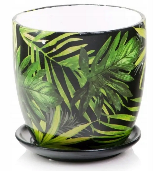 Zielona Doniczka Okrągła ze Zdobieniami 20x18 cm