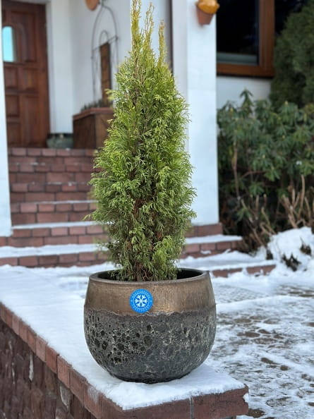 Dzięki doborze odpowiedniego rodzaju gliny, bardzo wysokiej temperaturze w piecu (powyżej 1150 stopni Celsjusza) i stosownemu procesowi wypalania, donica jest w 100% mrozoodporna. Użytkowanie w ogrodach przez cały rok nie będzie więc stanowić problemu.